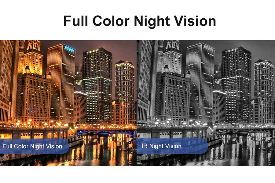 Full Color Night Vision refers to a camera’s ability to capture true color images at night or in extremely low-light environments, instead of switching permanently to black-and-white infrared mode.